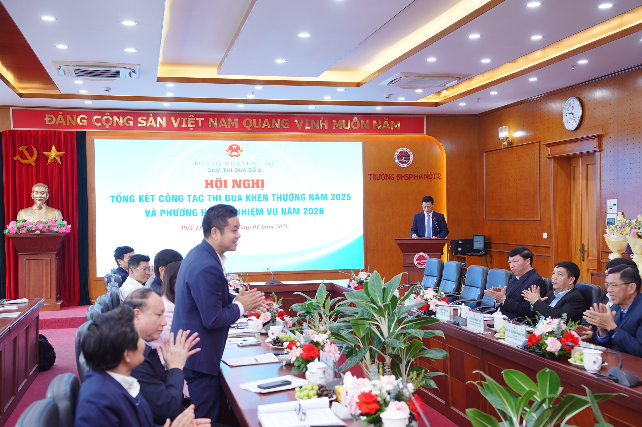 Sáng 30/01/2026, Trường Đại học Sư phạm Kỹ thuật Vinh tham dự Hội nghị tổng kết công tác thi đua, khen thưởng năm 2025 và triển khai phương hướng nhiệm vụ năm 2026 của Cụm thi đua số 2, do Trường Đại học Sư phạm Hà Nội 2 đăng cai tổ chức, với sự th...